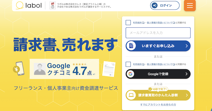 ペイトナーと双璧をなす、個人事業主の救世主です。最大の特徴は「24時間365日振込」に対応している点。銀行が閉まっている土日祝日や深夜に現金が必要なら、ラボル一択です。