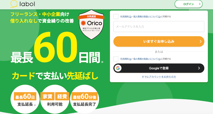 先ほど紹介したラボル(labol)は、ファクタリングだけでなく、この「請求書カード払い(ラボル カード払い)」にも対応しています。